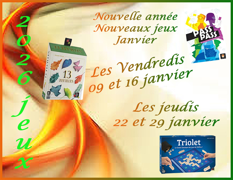 Pour le début de la nouvelle année, Sylvie  propose 4 dates en janvier afin de se retrouver lors d’après midi « jeux de société » avec toujours plus de jeux..