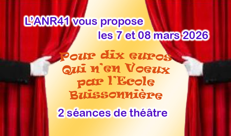 Nous vous proposons 2 séances théâtrales le samedi 7 mars et le dimanche 8 mars à la salle des fêtes de Cellettes.