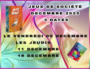 Voir les détails »JEUX DE SOCIETE DE DECEMBRE