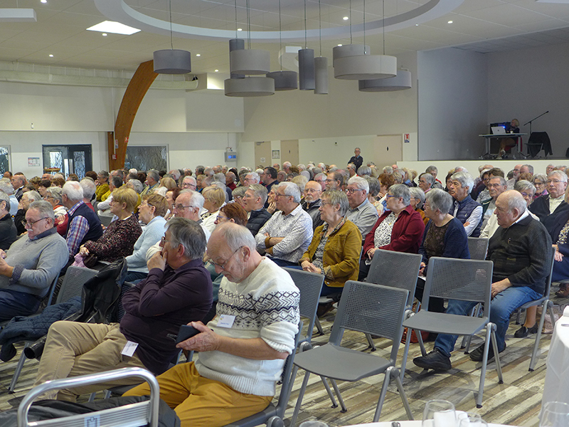Alain Bailly accueille les 220 participants (un record), dont de nombreux nouveaux adhérents, leur souhaite la bienvenue et présente ses invités, Félix Vezier du bureau national, les représentants des autres ANR de la région, les représentants des autres associations de retraités de la fonction publique, et le maire de Cellettes et son adjointe.
